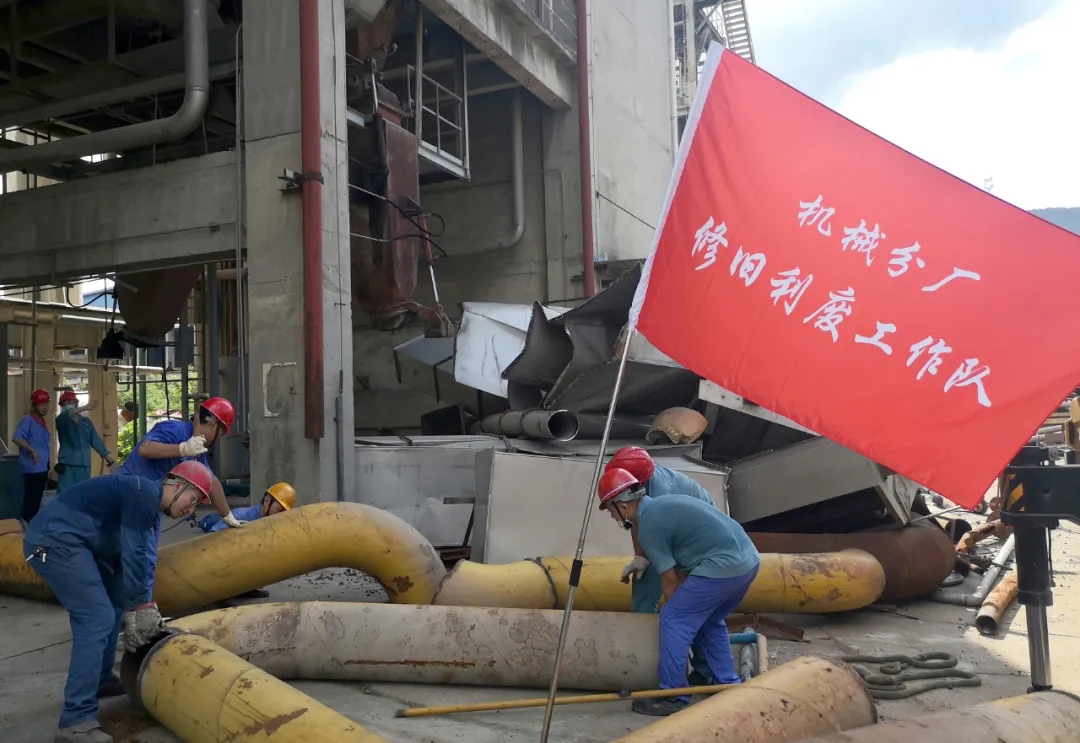 8月3日上午,機(jī)械分廠修舊利廢工作隊(duì)正式成立,工作隊(duì)十幾名成員前往醋酐現(xiàn)場(chǎng)整理、分割維修可再利用材料,拉開了修舊利廢工作的序幕。