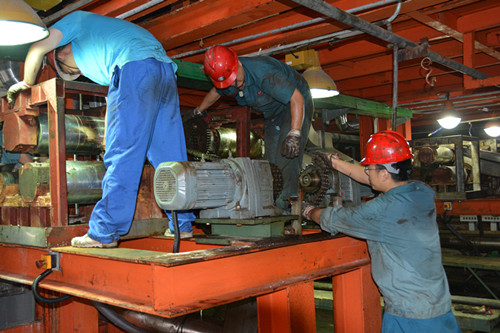 借大修改造之機(jī),水泥分廠對(duì)環(huán)境進(jìn)行整治。圖為職工在清理積灰