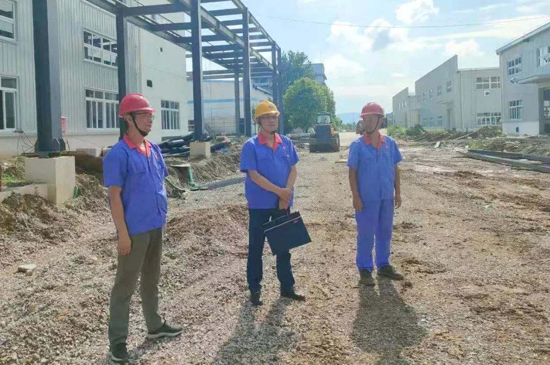 在花山公司二期項目建設(shè)現(xiàn)場,余明祥對實驗樓的建成、二期倉庫建好具備驗收條件、包裝生產(chǎn)線主設(shè)備安裝就位等工作給予了充分肯定。對鋼結(jié)構(gòu)生產(chǎn)線安裝進度提出了意見和建議。