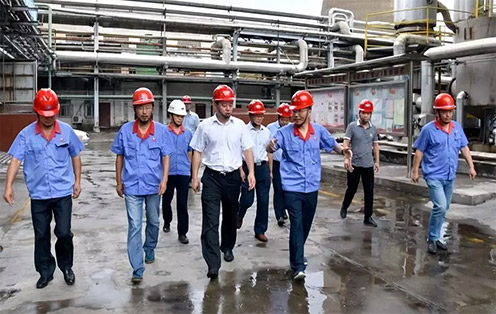 隨后,王斌行深入有機分廠生產(chǎn)現(xiàn)場。高申保介紹了公司?;飞a(chǎn)、儲存和管理等工作。
