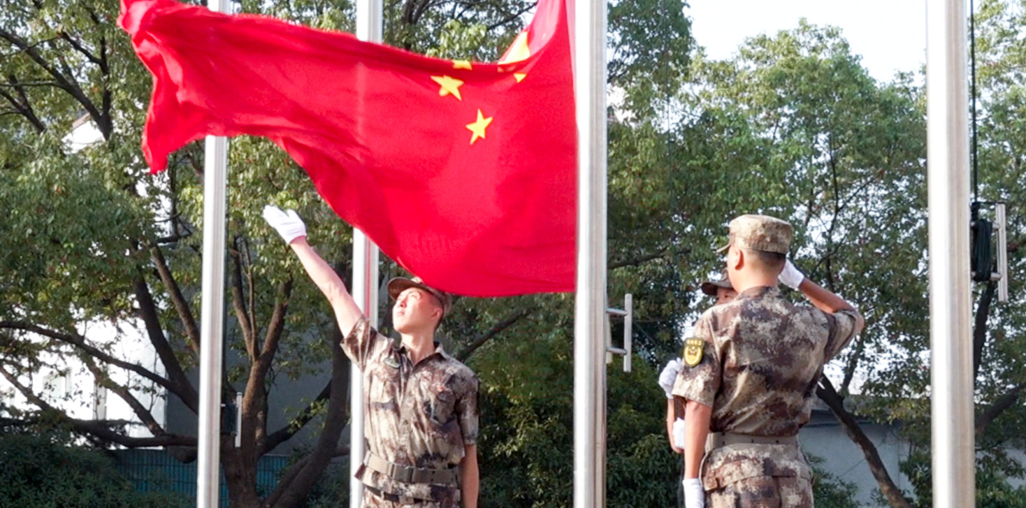 ? 隨著鮮艷的名族大旗緩緩升起,全體人員行注目禮,并伴著音樂(lè)高唱國(guó)歌:“起來(lái),不愿做奴隸的人們,把我們血肉筑成我們新的長(zhǎng)城……”