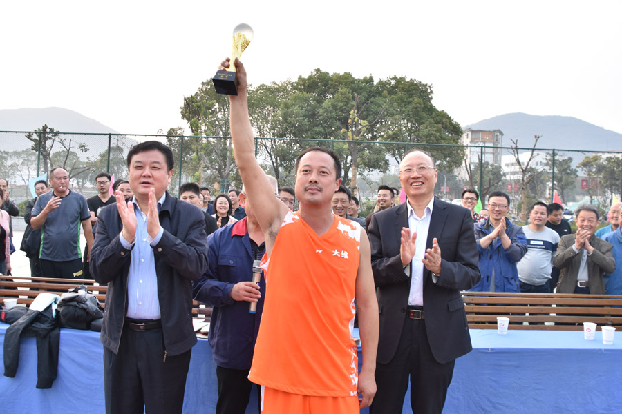 比賽結(jié)束后,吳福勝、張正和為領(lǐng)先隊(duì)大維分廠籃球隊(duì)頒發(fā)了獎(jiǎng)杯,向勝隊(duì)伍表示祝賀。