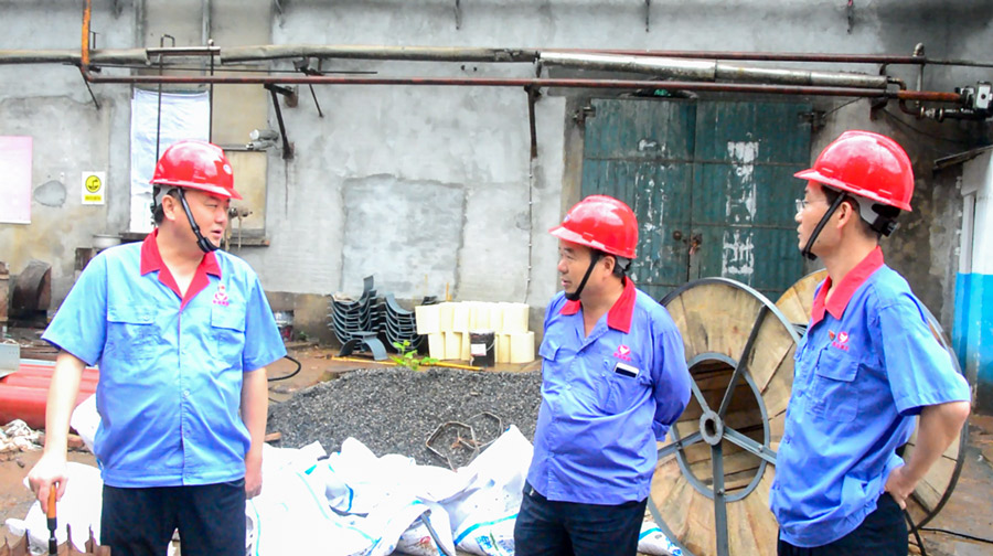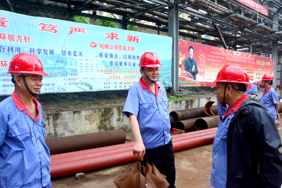 7月21日下午3時(shí)許,天空下起了大雨,集團(tuán)黨委書記、董事長吳福勝手撐雨傘,腳穿雨靴,深入化工系統(tǒng)大修現(xiàn)場檢查指導(dǎo)工作。