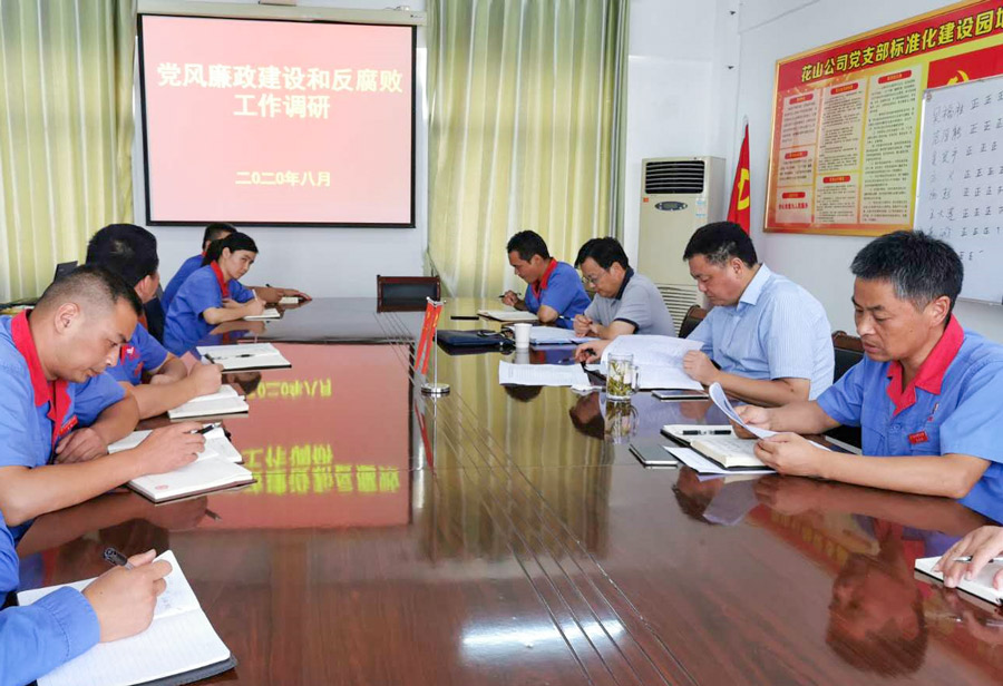 8月20日,集團(tuán)公司黨委書(shū)記、董事長(zhǎng)吳福勝深入花山公司開(kāi)展黨風(fēng)廉政建設(shè)和反腐敗工作專題調(diào)研,集團(tuán)紀(jì)委副書(shū)記湯曉紅陪同。