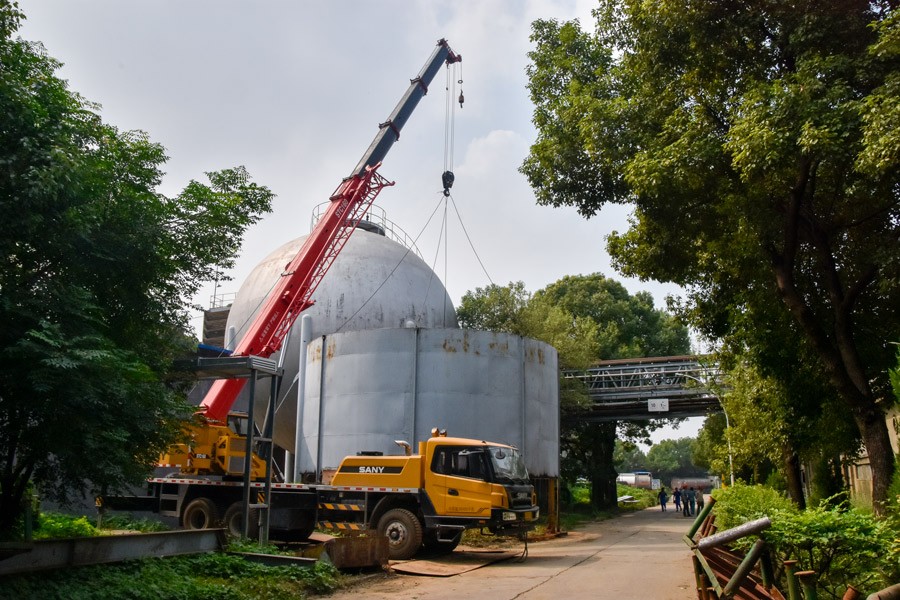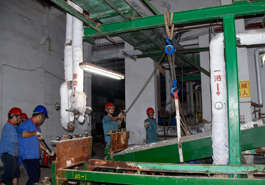 此次拆除工作,包含整個(gè)水溶纖維生產(chǎn)線、數(shù)百米管道、十臺(tái)冰機(jī)、蒸發(fā)器、電纜等,自8月下旬開始拆除,到9月底完成,時(shí)間只有40天不到。不僅時(shí)間緊、任務(wù)重,而且拆除工作中特種設(shè)備多、特種作業(yè)多,相對來說公司維修工、起重工等特殊工種人員有限,制約了拆除速度。