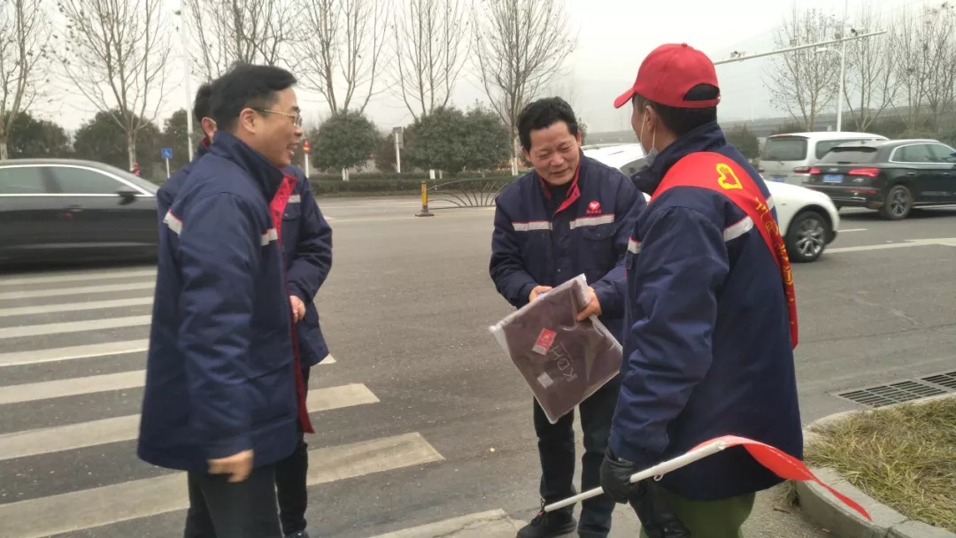 5日上午一上班,唐成宏與黨委工作部、PVA膜分廠、德瑞格公司相關(guān)負(fù)責(zé)人到巢柘路段,慰問(wèn)正在值勤的志愿者們,為他們送上了圍巾與保溫杯,傳遞著黨組織對(duì)他們的一份關(guān)心。