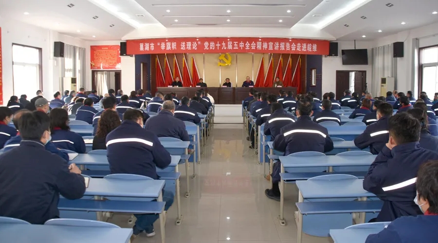 為深入學(xué)習(xí)貫徹黨的十九屆五中全會精神,根據(jù)巢湖市委宣傳部統(tǒng)一安排,元月14日下午,巢湖市“舉旗幟·送理論”黨的十九屆五中全會精神宣講會在公司舉行,原地級巢湖市委組織部常務(wù)副部長趙朝貴向廣大干部職工宣講黨的十九屆五中全會精神。集團(tuán)公司黨委副書記張正和主持報告會,公司各基層黨組織負(fù)責(zé)人、黨員骨干120余人聆聽了宣講報告。