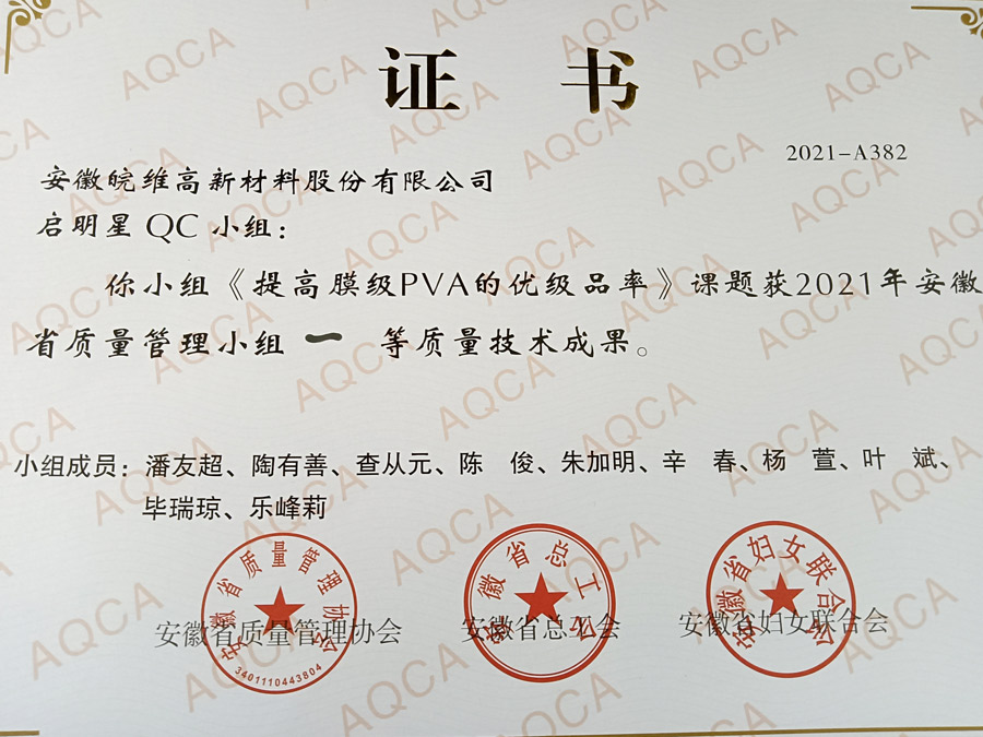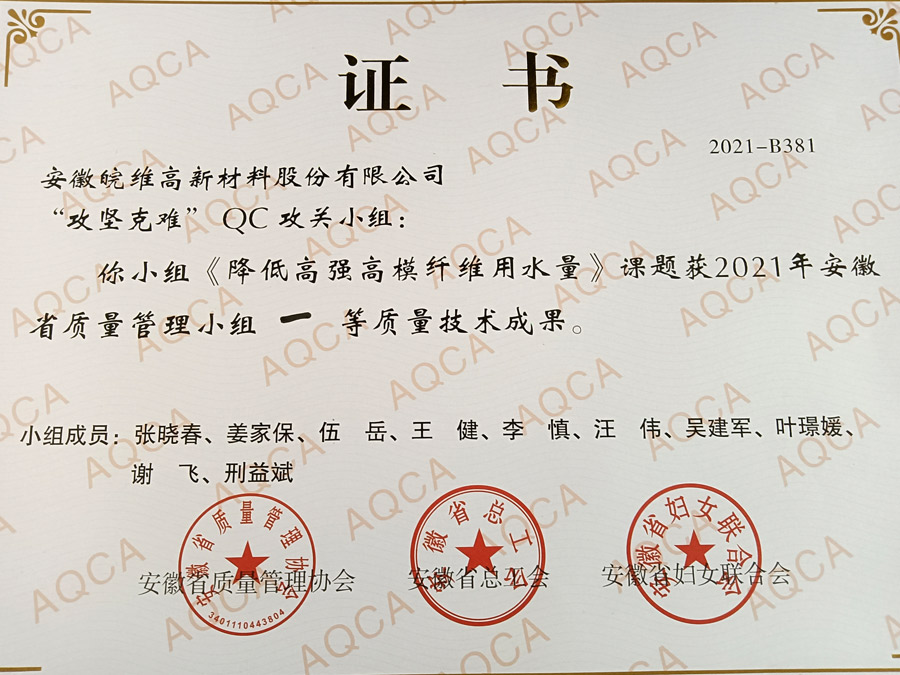 ? 9月27日-29日,由安徽省質(zhì)量管理協(xié)會(huì)組織舉辦2021年度QC小組成果發(fā)布會(huì),公司質(zhì)量管理部帶隊(duì)參賽的4個(gè)QC小組課題取得優(yōu)異成績,大維分廠閆真、劉仁俊發(fā)布的《降低高強(qiáng)高模纖維用水量》和有機(jī)分廠楊萱、畢瑞瓊發(fā)布的《提高膜級PVA的優(yōu)級品率》課題獲得大賽一等獎(jiǎng),聚酯分廠《提高非晶型共聚酯優(yōu)等品率》和PVA膜分廠《提高STN級PVA光學(xué)薄膜優(yōu)級品率》課題獲得大賽二等獎(jiǎng)。