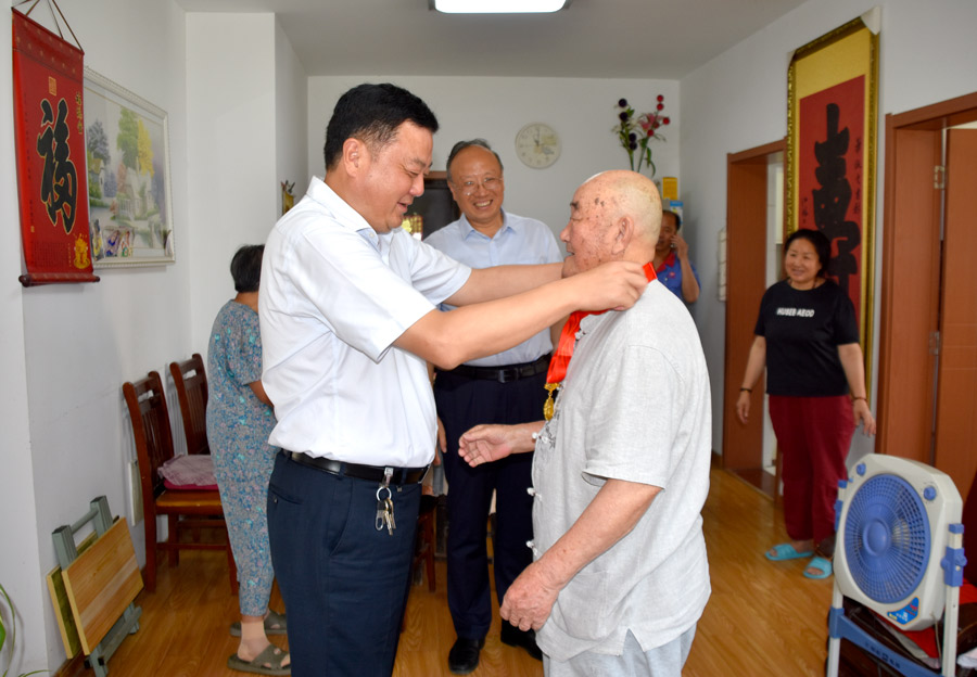 6月23日上午,集團公司黨委書記、董事長吳福勝,黨委副書記張正和率黨委工作部、社區(qū)管理中心、職工醫(yī)院相關負責人來到皖維生活區(qū),專程上門為未參加“光榮在黨50年”紀念章頒發(fā)儀式的老黨員頒發(fā)紀念章,向他們致以崇高的敬意和誠摯的問候。