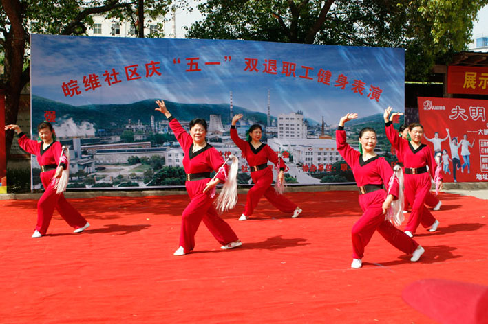 社區(qū)舉行慶“五一”雙退職工健身表演